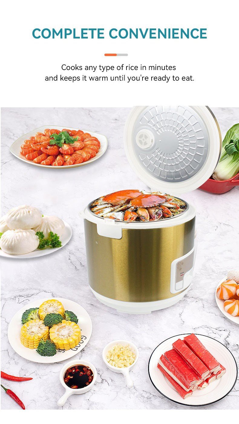 এই স্বয়ংক্রিয় ডিলাক্স রাইস কুকার আপনাকে সুস্বাদু খাবার তৈরি করতে সাহায্য করে। এটি সব ধরনের চালের জন্য উপযুক্ত যেমন সাদা চাল, বাসমতি চাল, রিসোটো এবং সুশি চাল। আপনি যে ভাত প্রস্তুত করতে চান না কেন, এই রাইস কুকারের সাথে এটি নিখুঁত হবে!